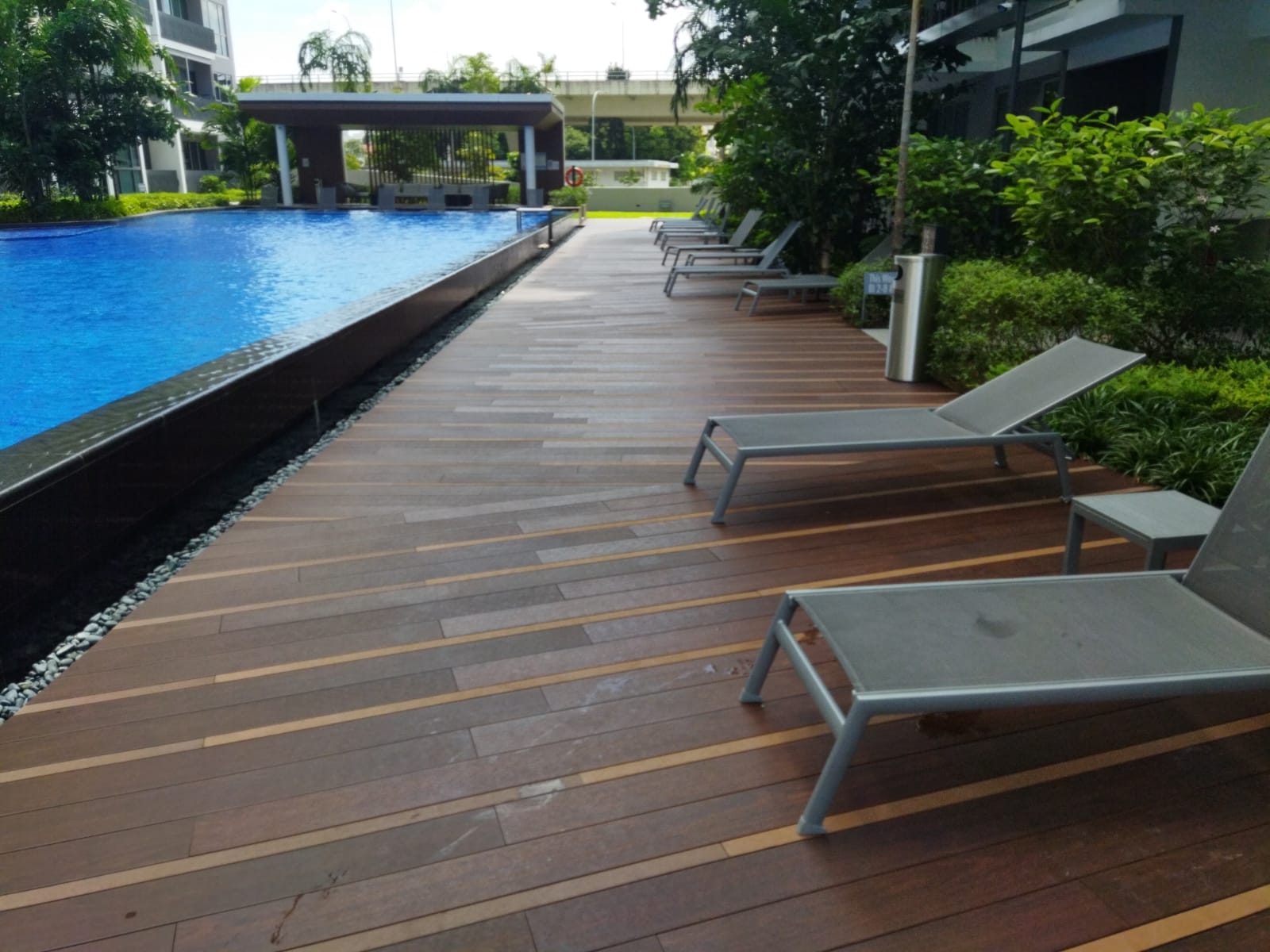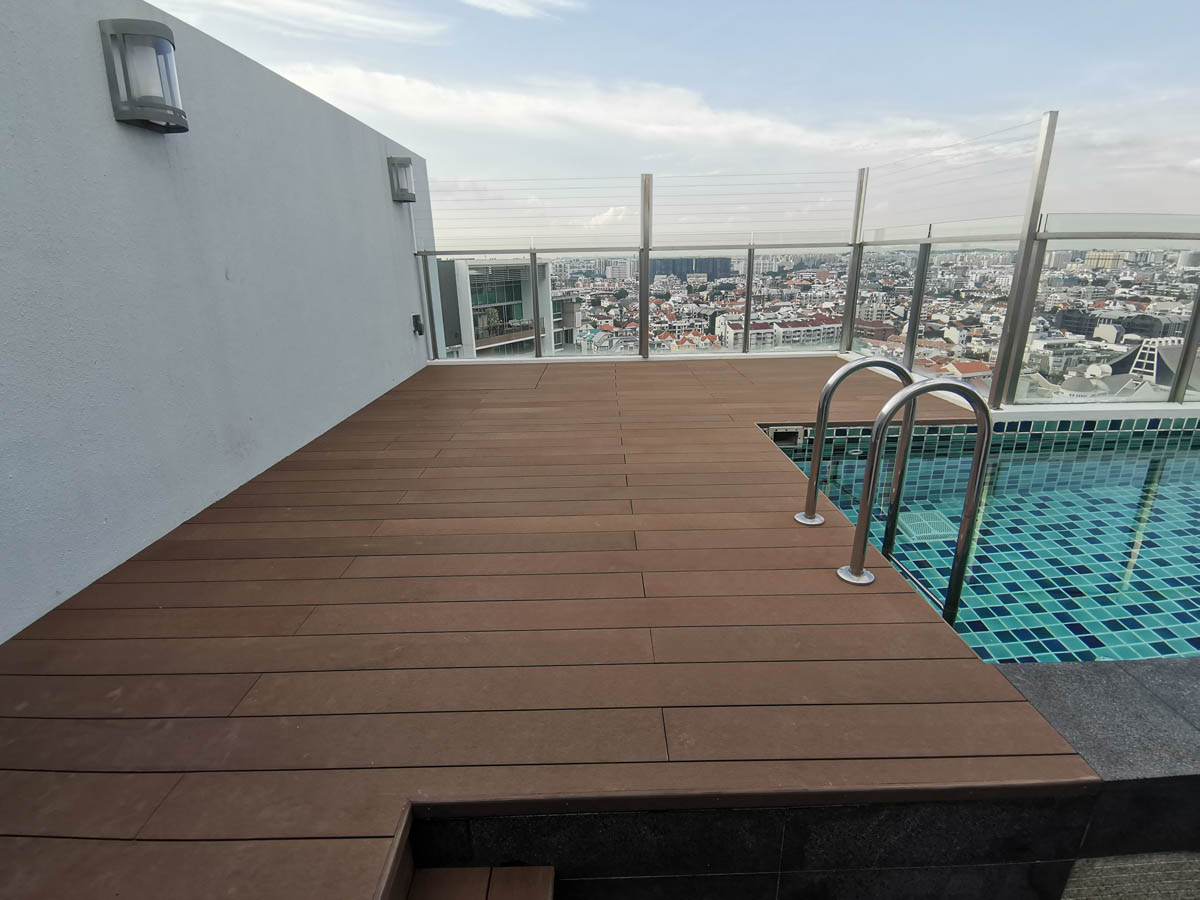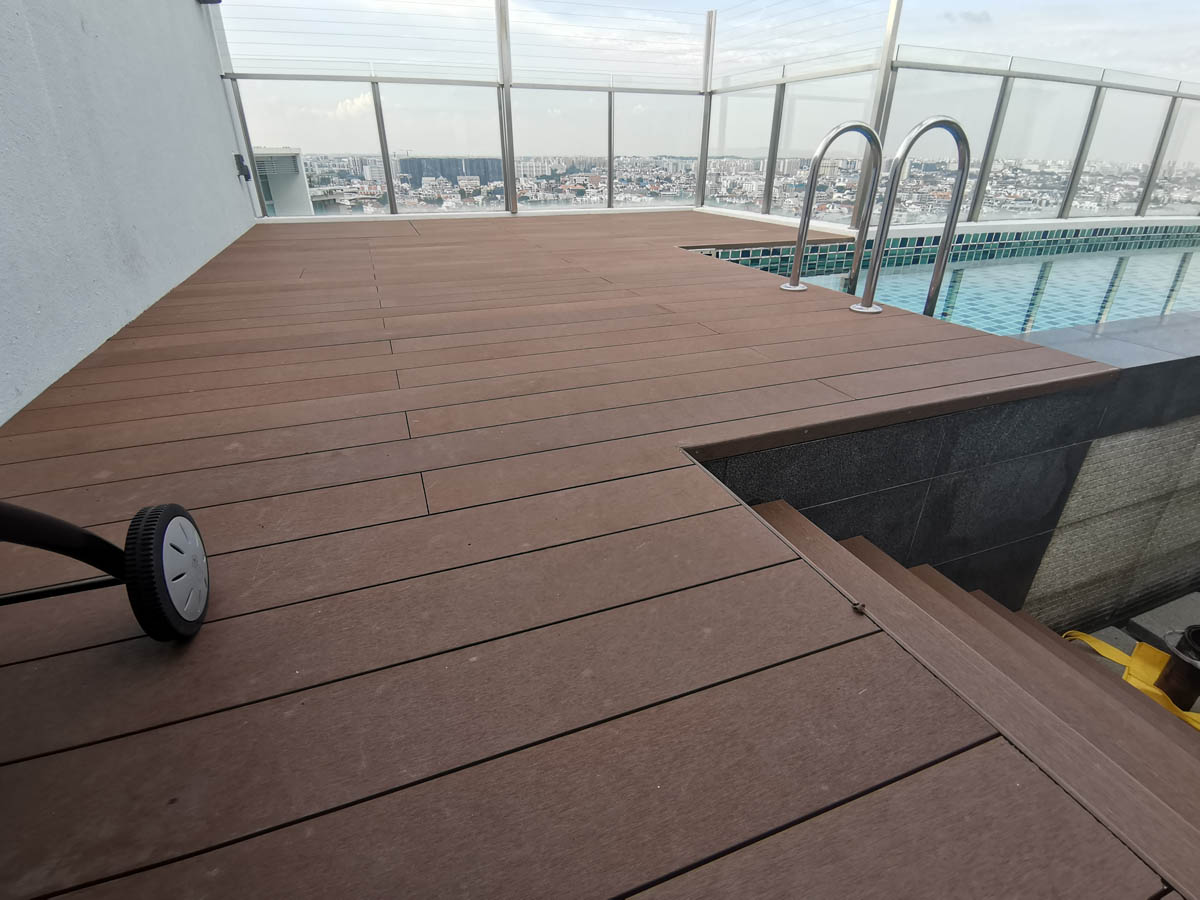 In Singapore's climate, wood and composite decks deteriorate fast, needing complete replacement and major renovation within 5-7 years.