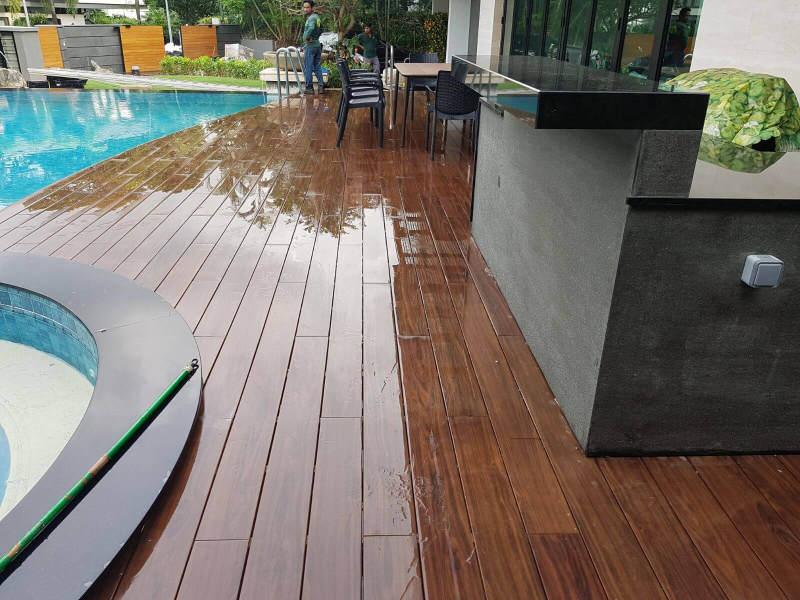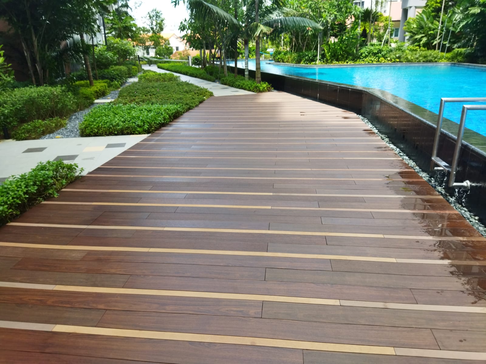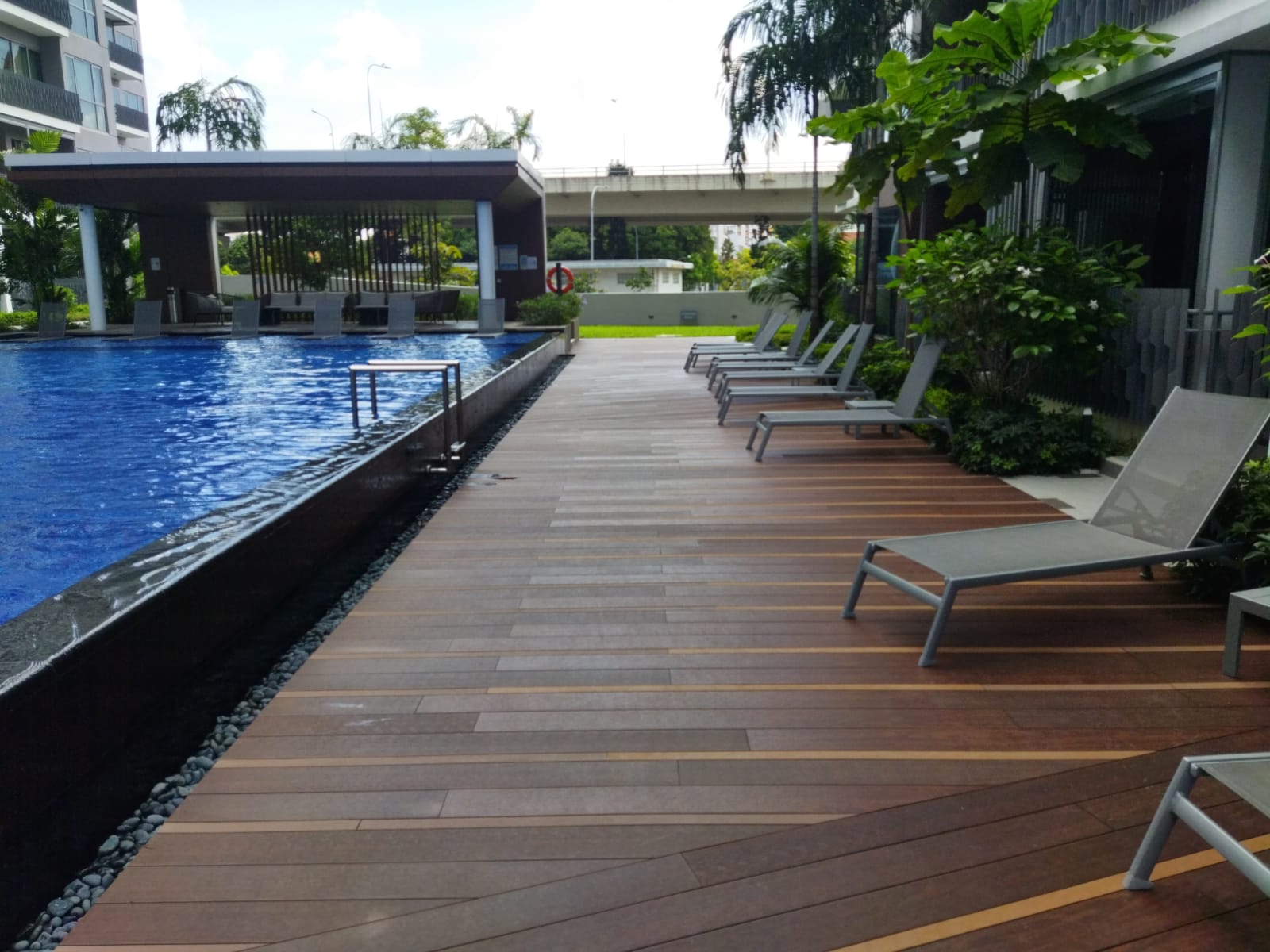 Our decking is developed to tackle Singapore's weather: high humidity, intense UV rays, and year-round rain.
