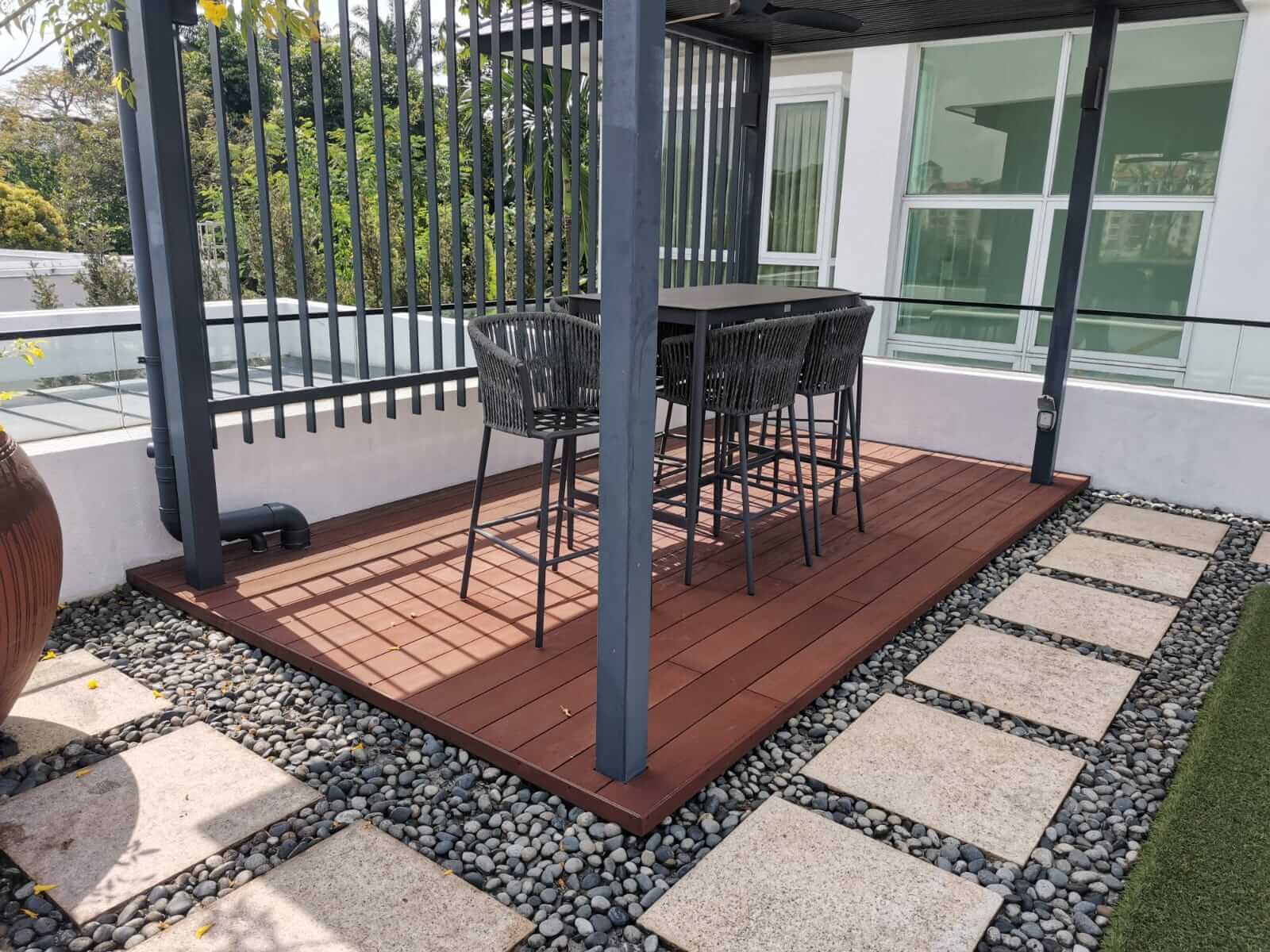 Installation time varies depending on the size of the area. Small balcony may take just 1–2 days, while larger spaces like landed property decks or expansive balconies can take 1 to 2 weeks.