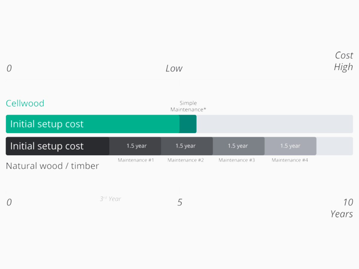 While the initial investment is higher than WPC decking, CELLwood® pays for itself through: